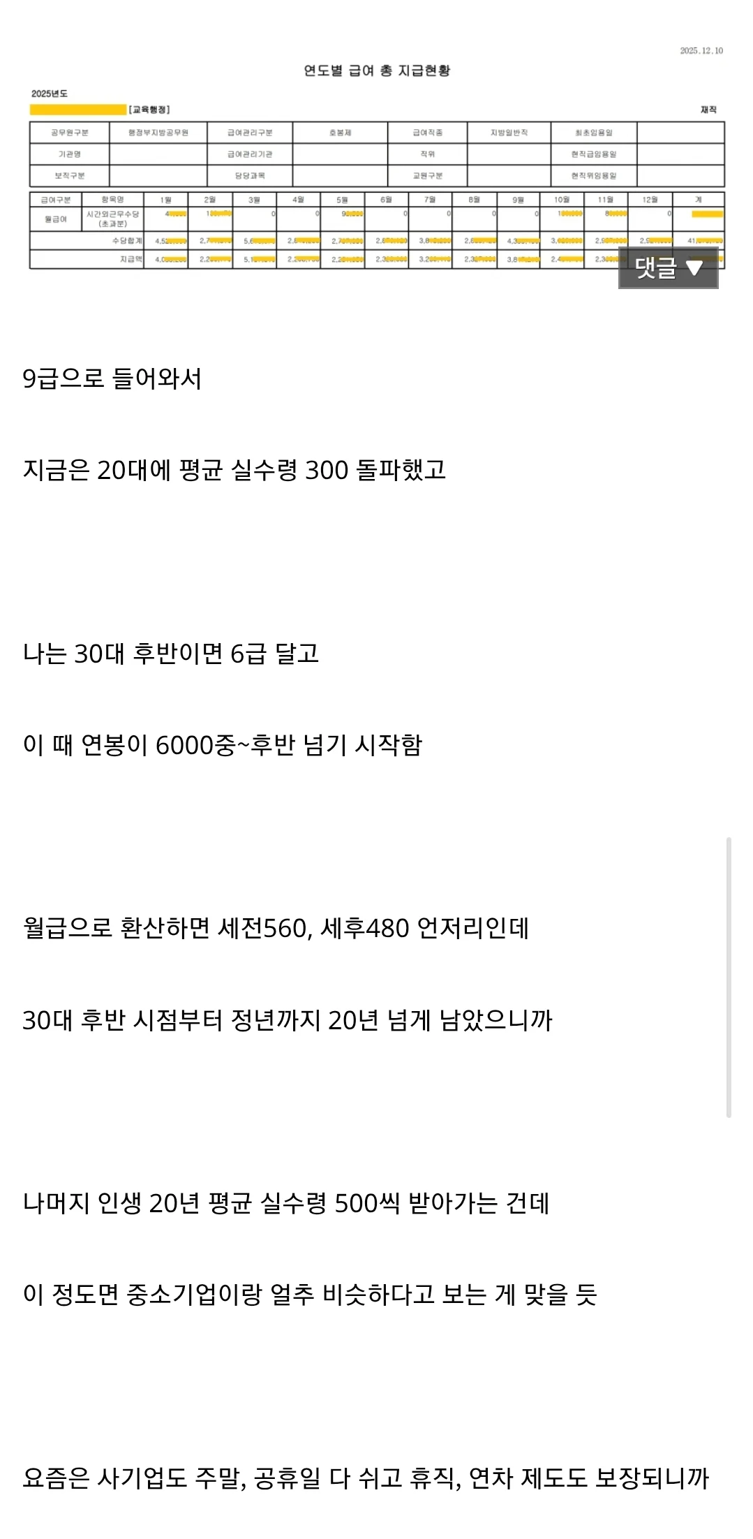 9급 공무원인데 중소기업이랑 비슷함