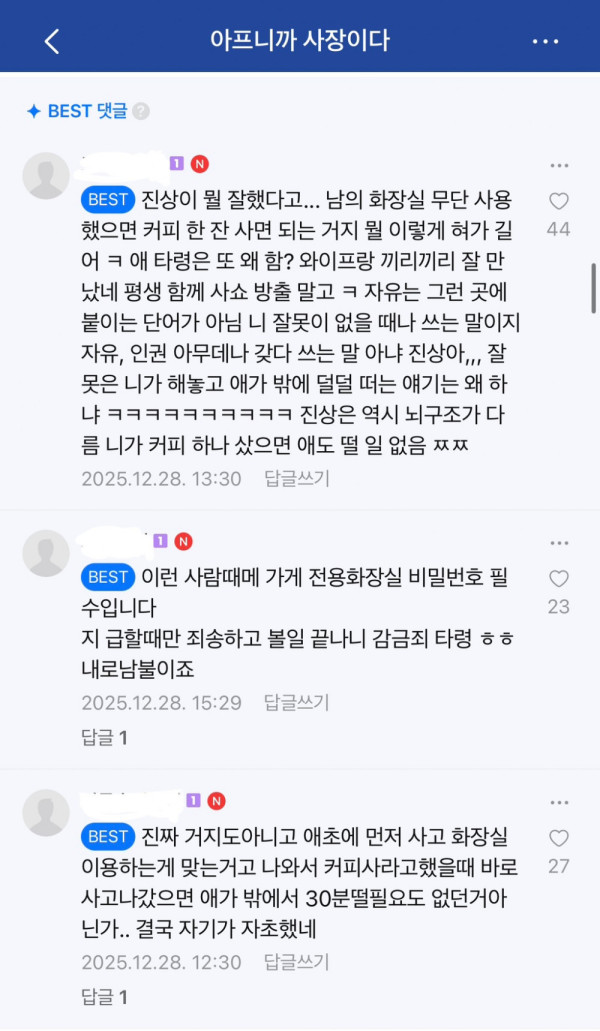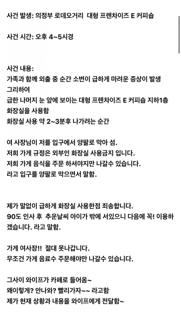 거기다 화장실 문에도 이용료 5000원 or 음료 주문해야 이용 가능하다 이런식으로 매장 내에 여기저기 붙여져 있었다고 ㅇㅇ