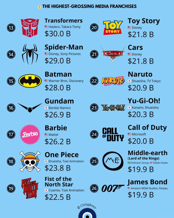 역사상 돈 제일 많이 번 미디어 프랜차이즈 순위