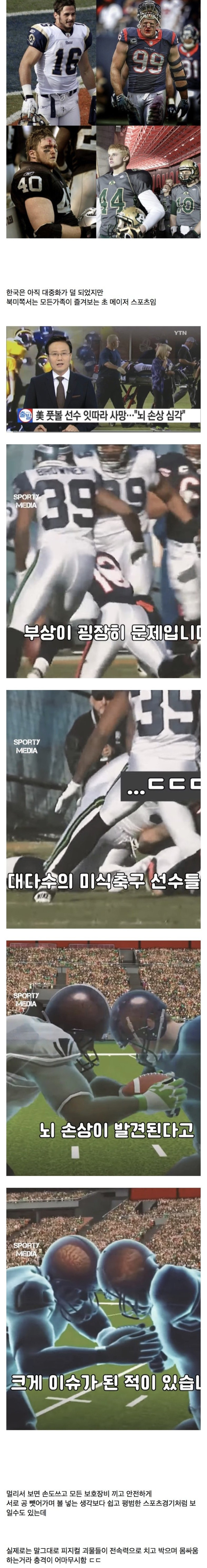 대놓고 손발로 타격하는 격투기계열보다 타격감과 부상강도 부상위험이 상상을 초월하는 공포 그 자체인 스포츠다.