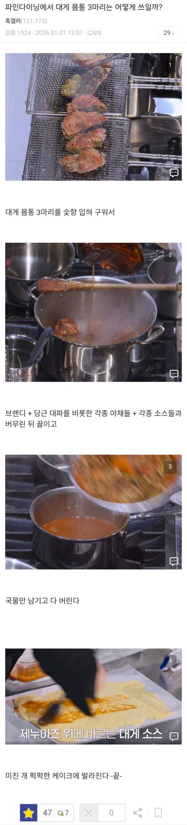 파인다이닝에서 대게 3마리가 쓰이는 용도