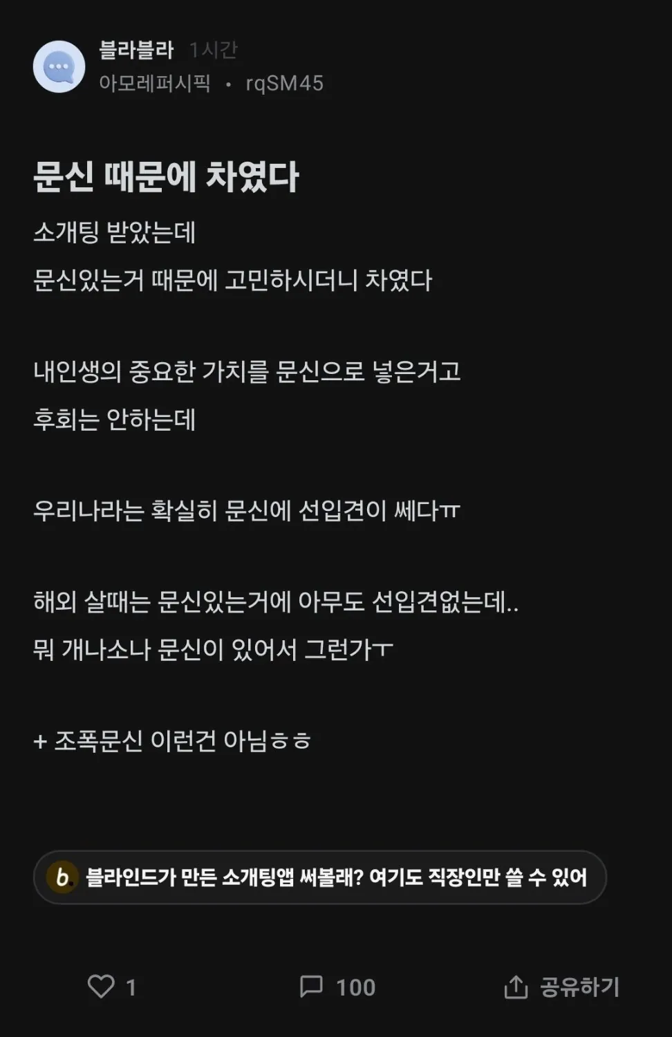 문신 때문에 차일 줄은 몰랐다는 사람