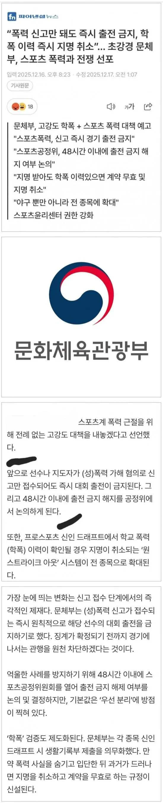 문체부, 스포츠 선수 폭력 의혹 무죄추정 원칙 적용 안한다