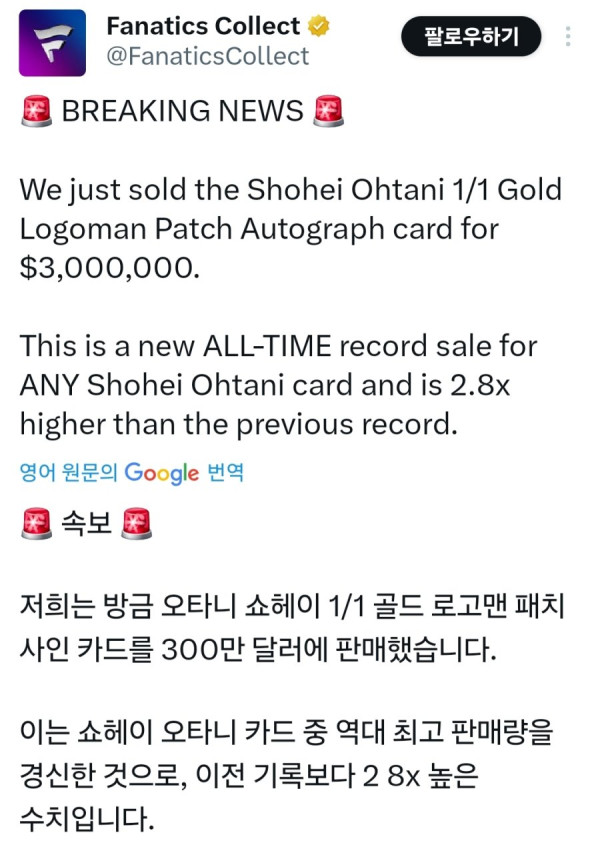 오타니 카드 잘뽑아서 인생 역전한 미국 가정