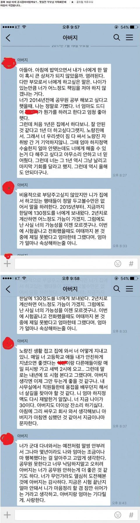 9급 공무원 장수생이 아버지에게 받은 카톡