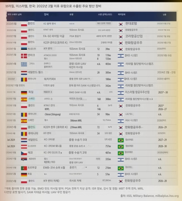 유럽 무기 수출국 중 거의 원탑인 대한민국