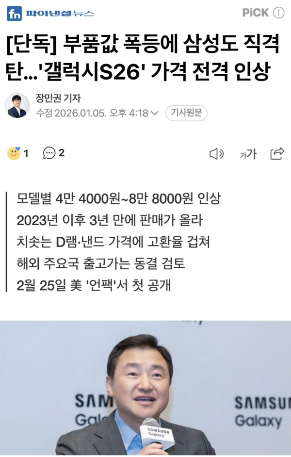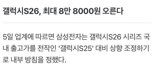 갤럭시S26 시리즈 가격 인상