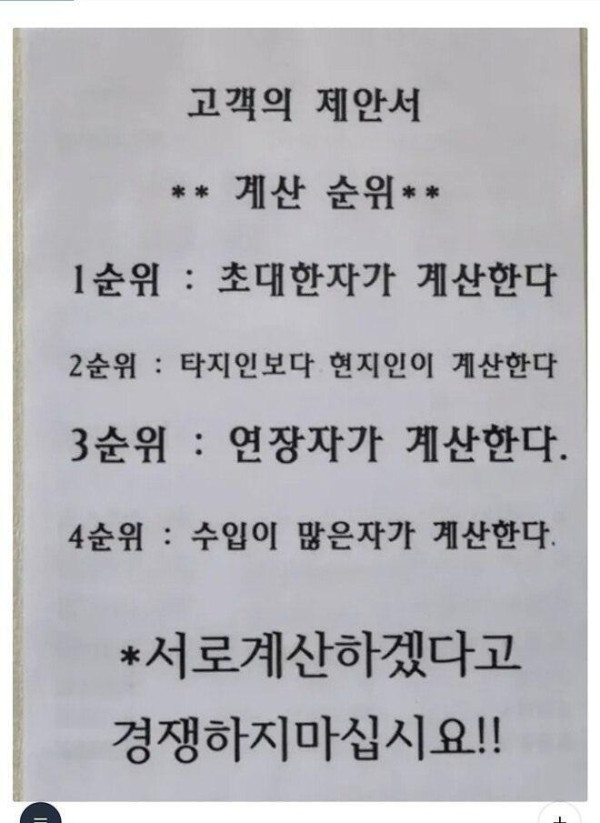식당에서 서로 하겠다고 싸울때 계산 순위
