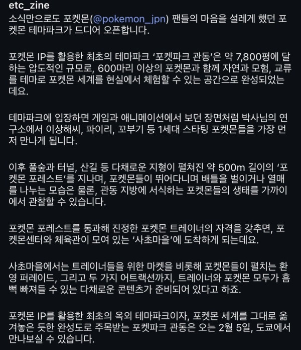 싱글벙글 포켓몬 테마파크 오픈