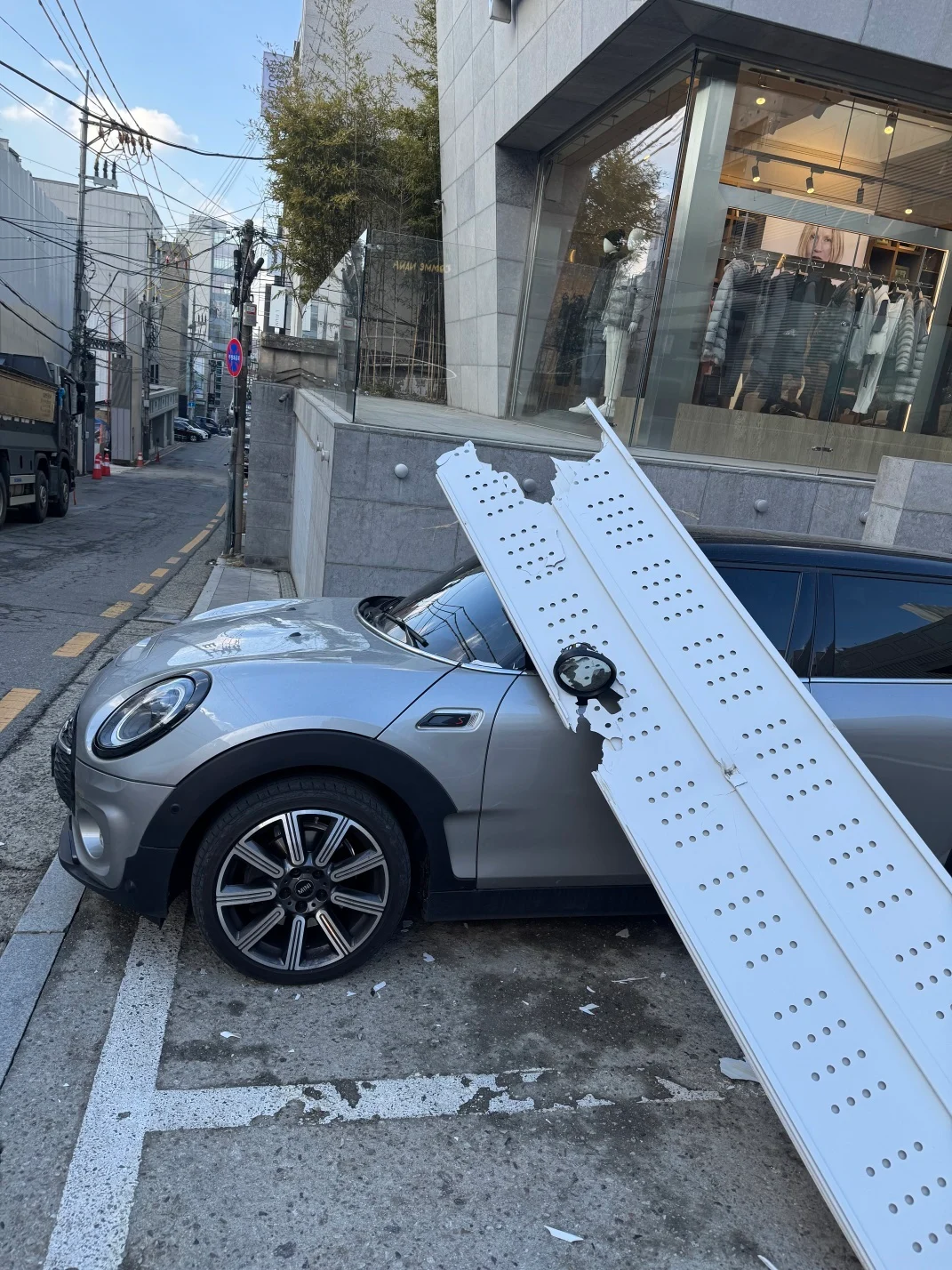 공사장 판떼기 떨어짐