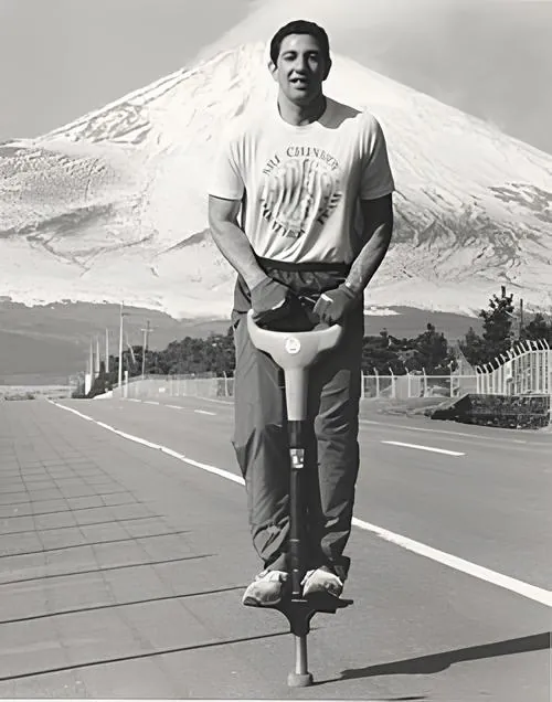 1986년 애쉬리타는 일본에서 포고 스틱 점프를 도전하는데