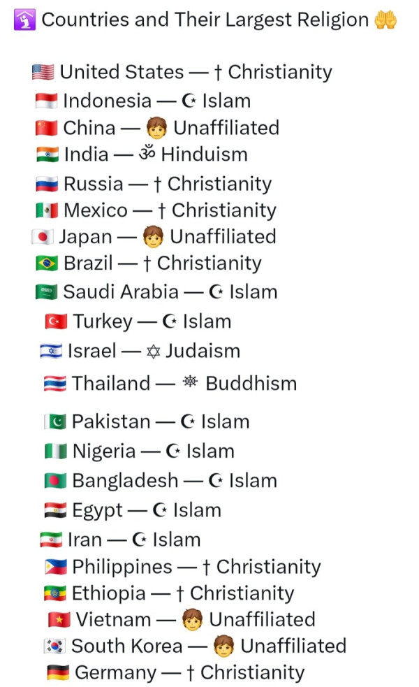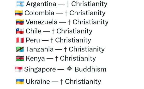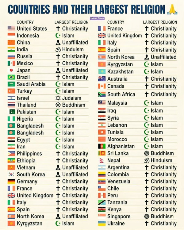 전세계 국가별 최다 종교