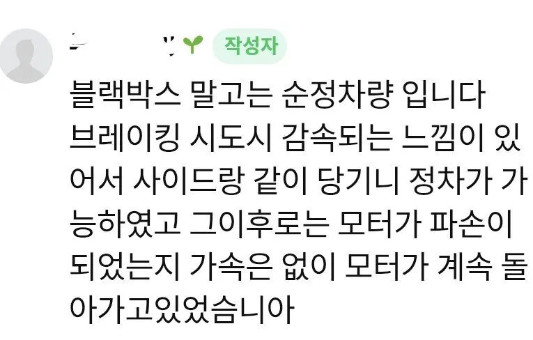 정차 후 밖에 나왔으나 계속 모터갈리는(?) 소리 같은게 남.