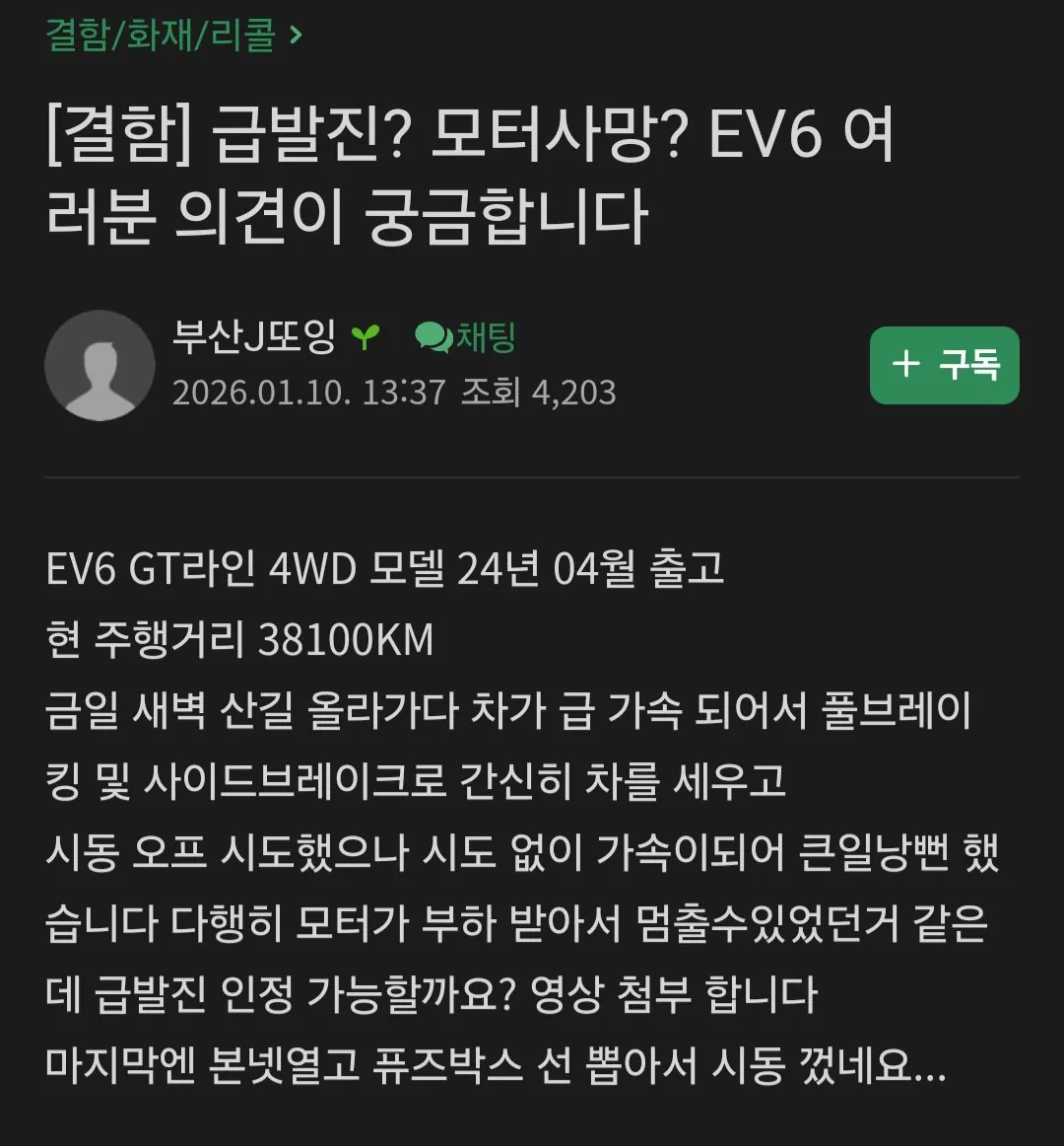산길 주행중 갑자기 차가 급가속됨 ㄷㄷ