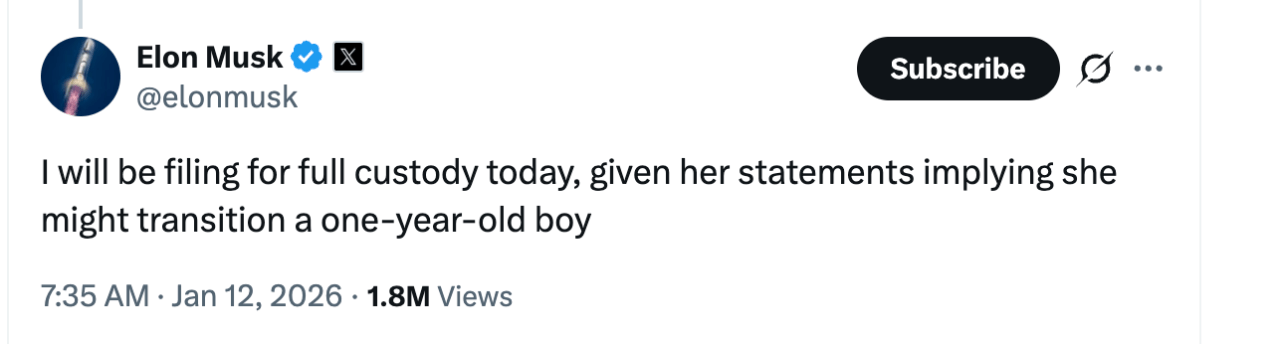 ** 머스크는 자신의 아들이 성전환 한 것에 대한 트라우마 때문인지
