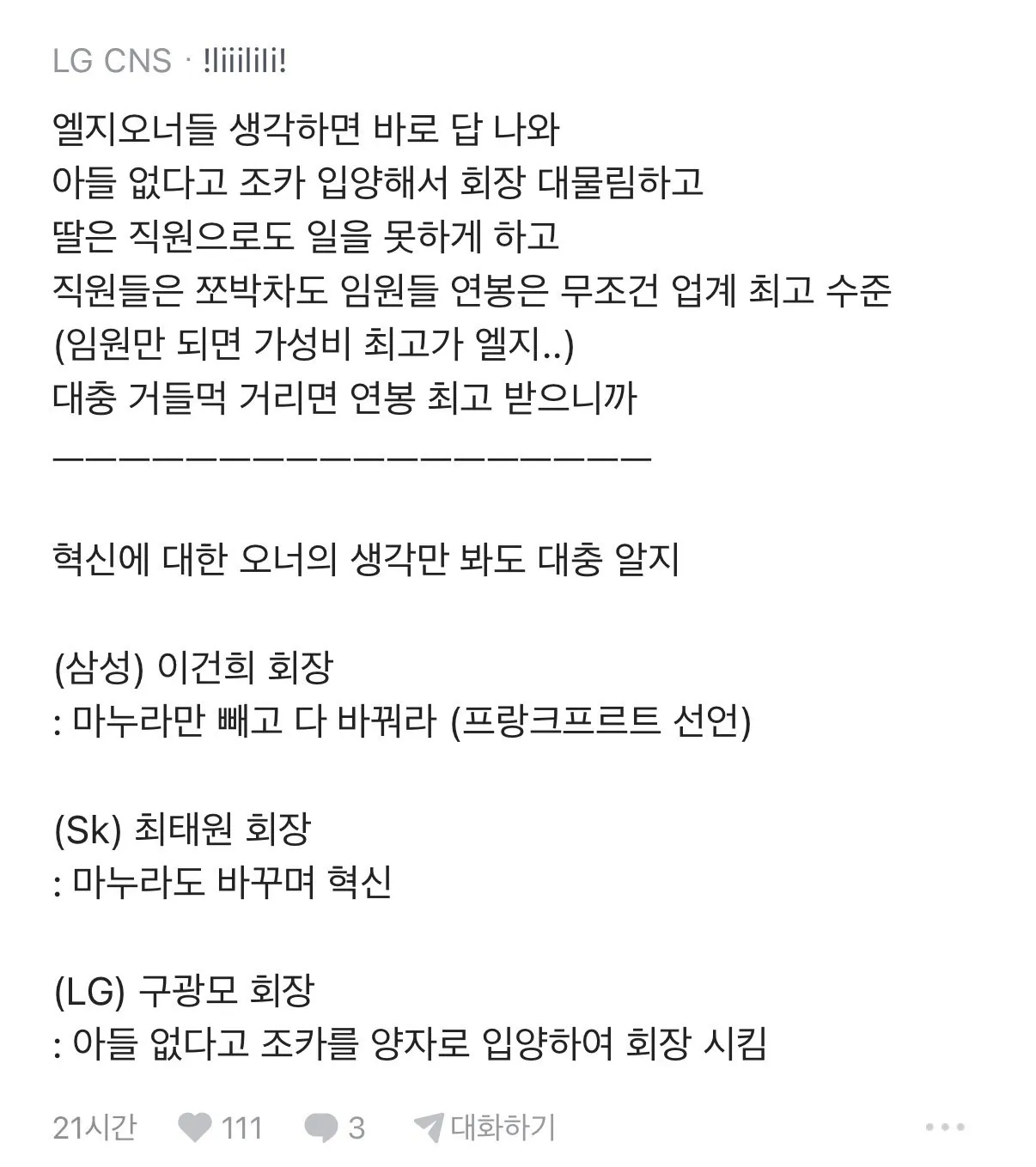 LG 출신이 말하는 LG의 문제점