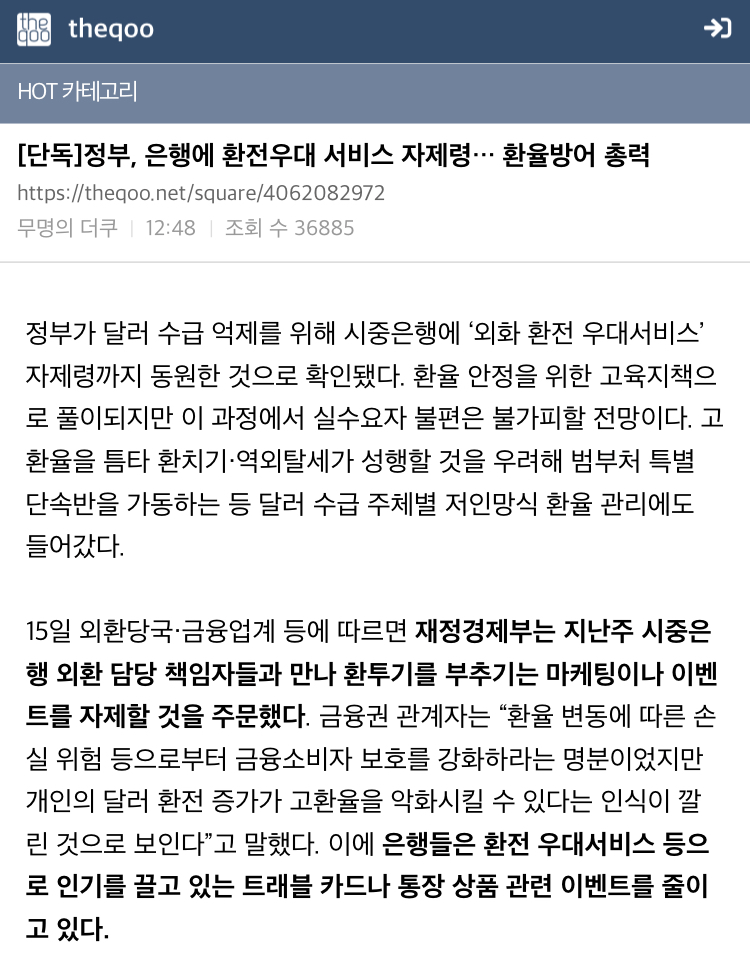 환전우대 자제에 난리난 여초 커뮤들