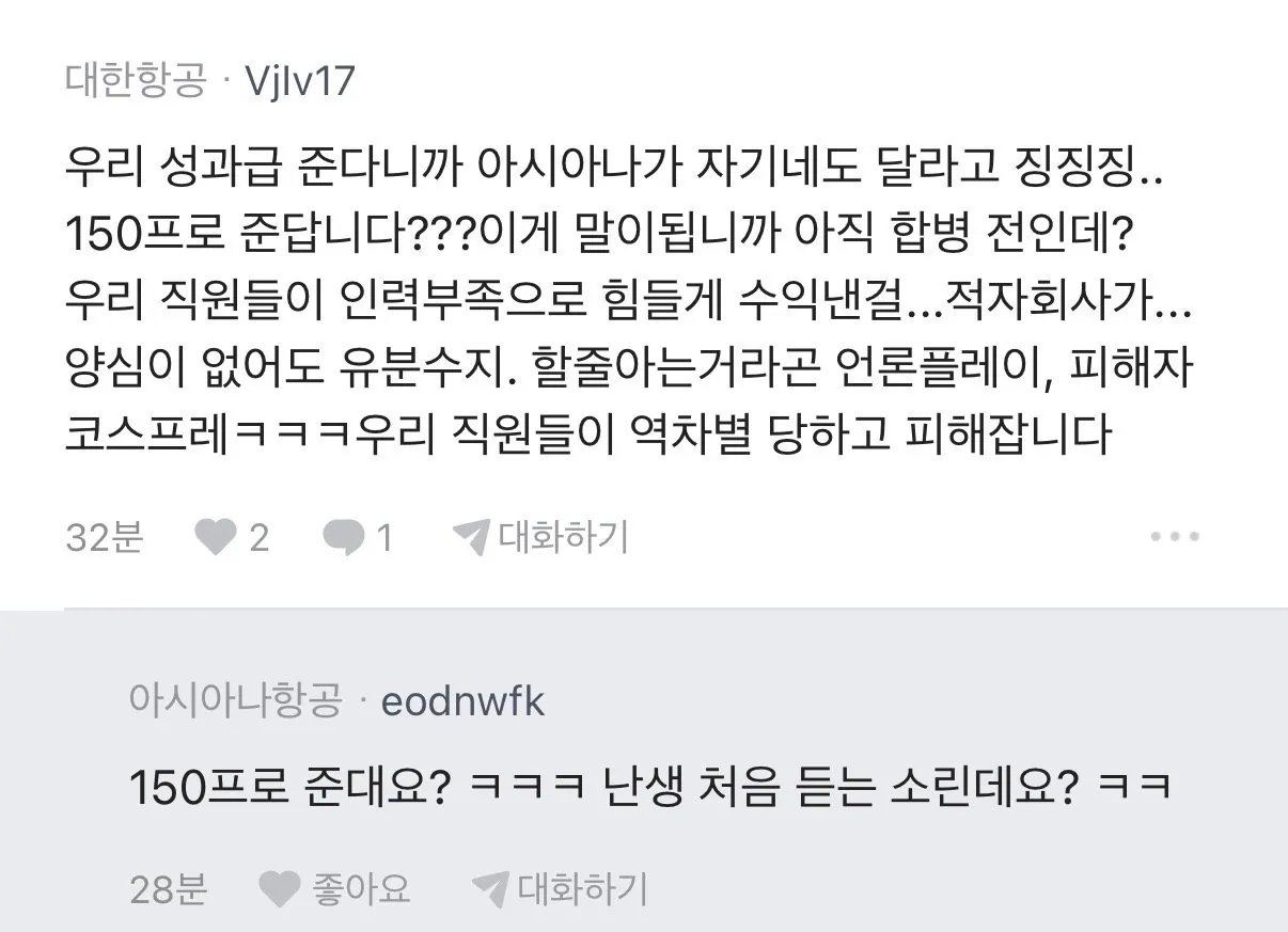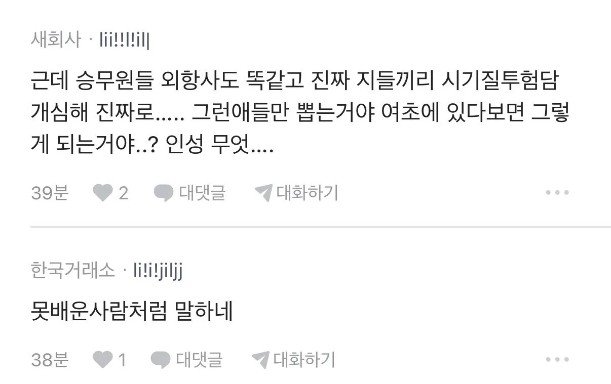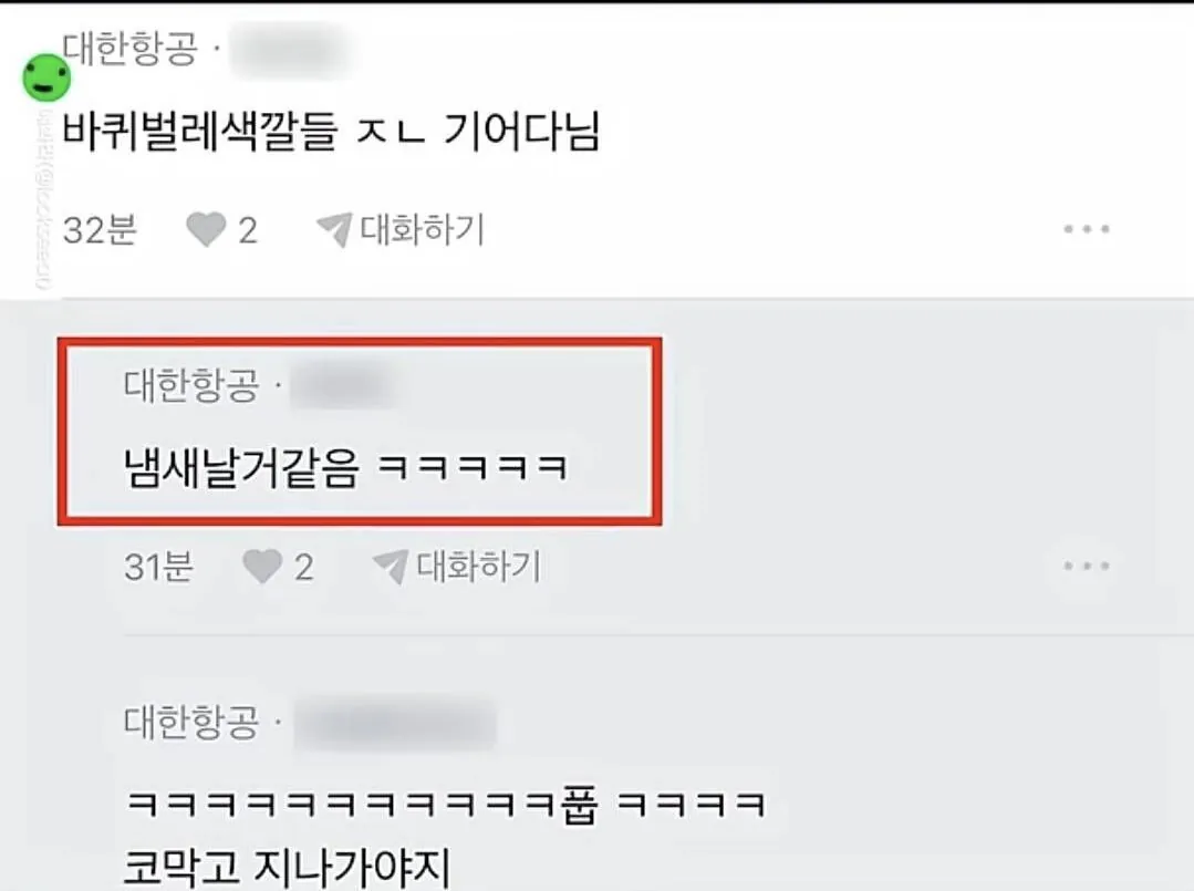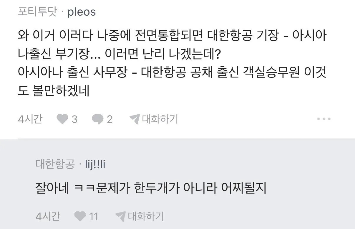 대한항공 아시아나 직원간 기싸움.. 사람들 반응