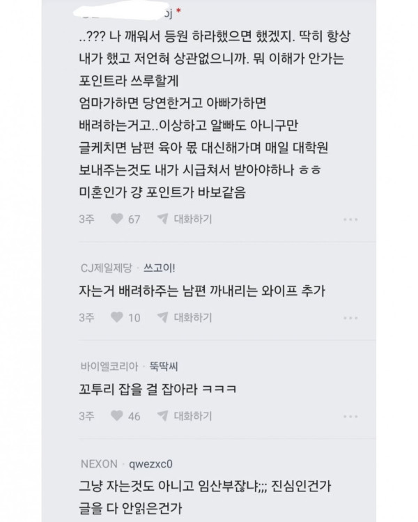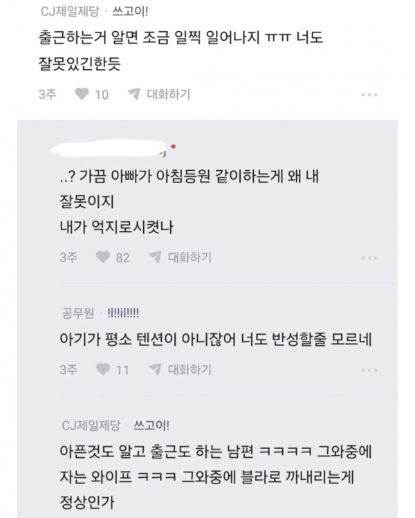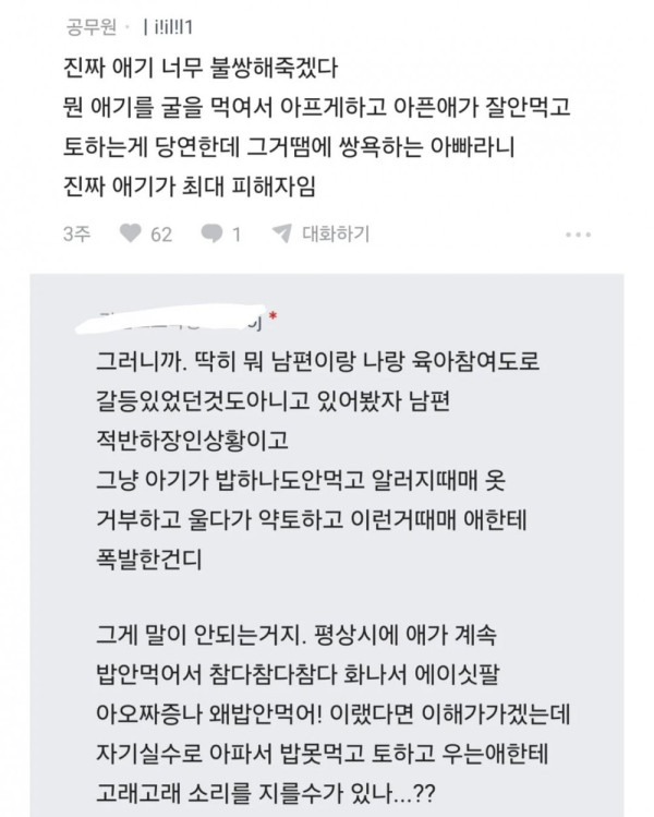 열람중 남편이 아기한테 화냄 등급아이콘 레벨아이콘 커뮤관리자 18:15 70