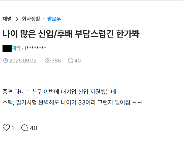 대기업이 나이 많은 신입을 꺼려하는거 같다는 블라인