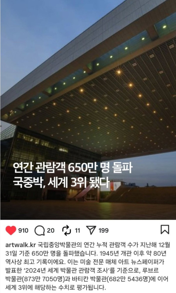 국립중앙박물관, 전세계 3위 ㄷㄷ