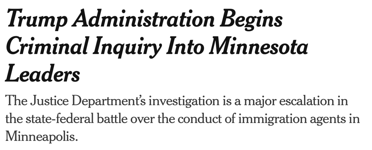 트럼프가 연방 검찰 동원해서 미네소타 주지사랑 미네아폴리스 시장을 반역 혐의로 수사 시작!!
