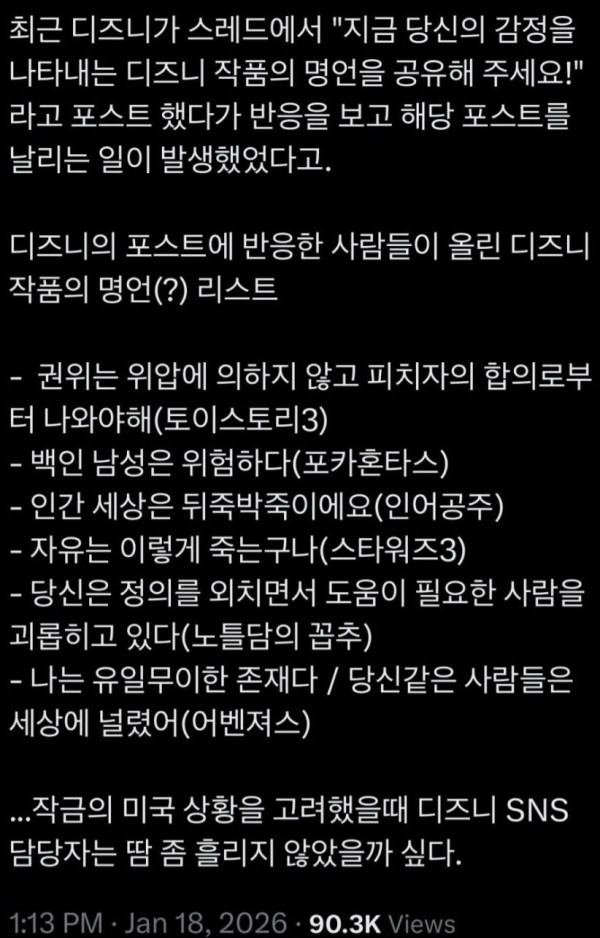 디즈니 명언 콘테스트 대참사