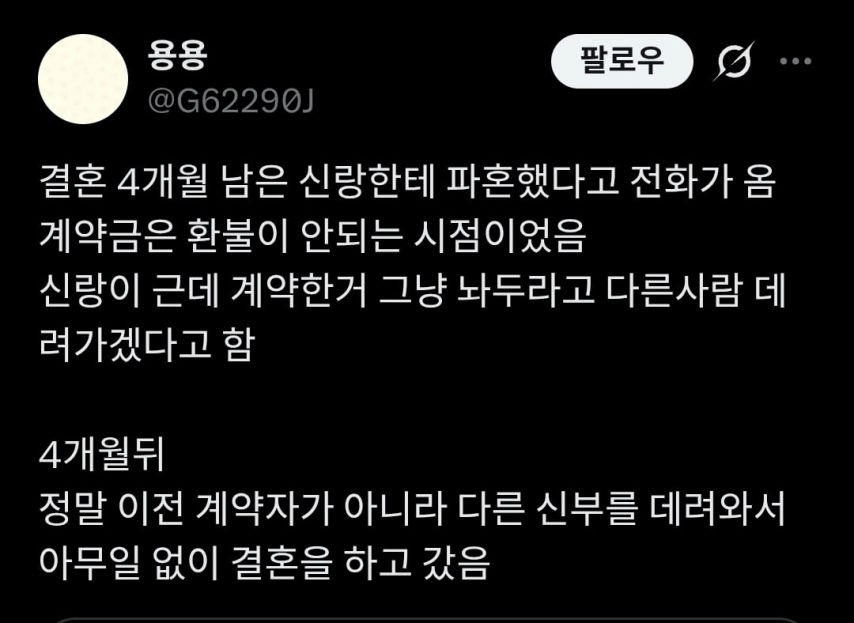 결혼 4개월전 파혼, 웨딩업체 계약금 손해보지 않은 이유