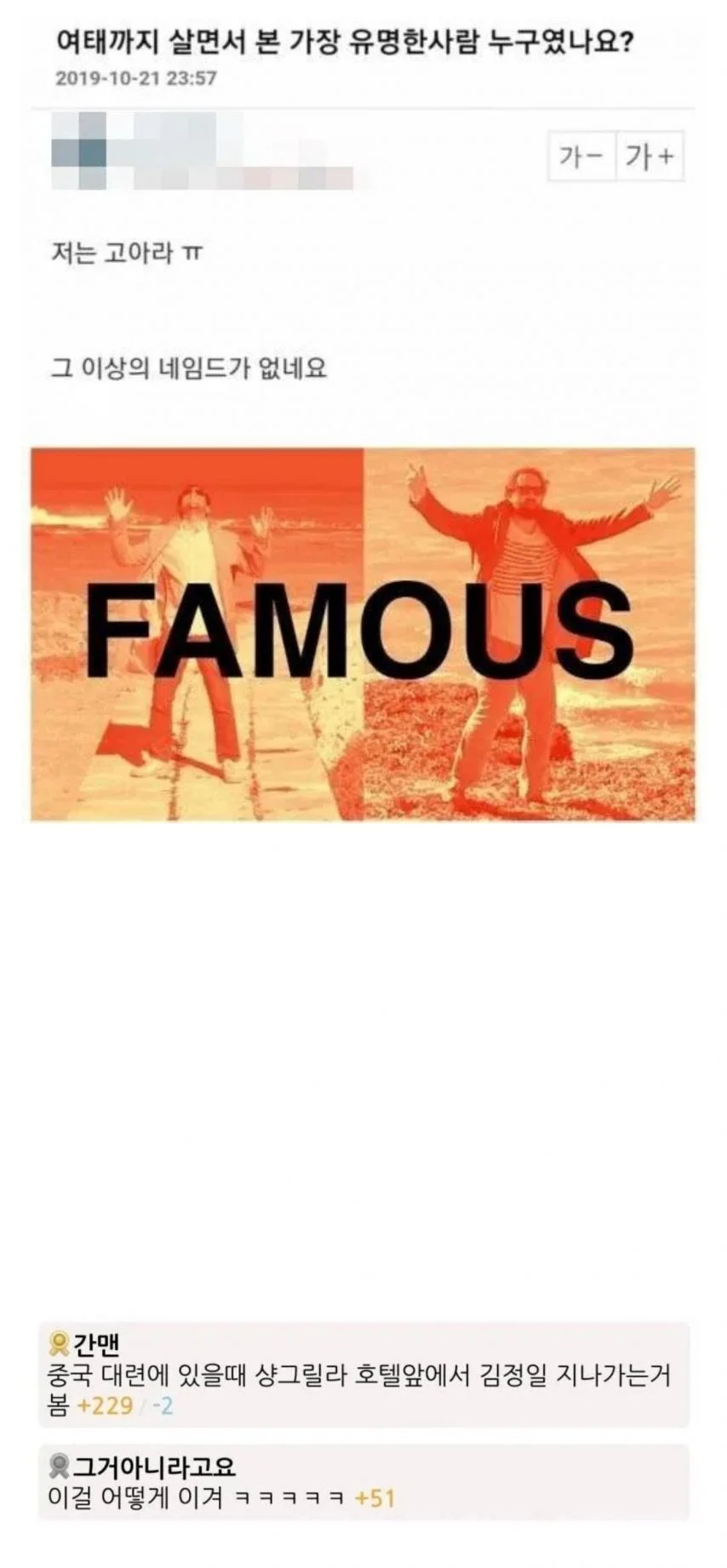 여태까지 살면서 본 가장 유명한 사람 누구였음?