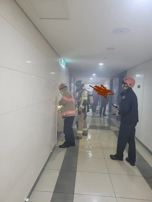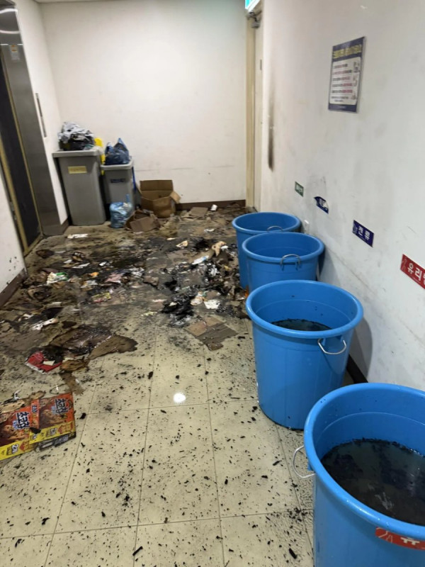 40층대 크린룸(분리수거장)에 꽁초 버려서 불 붙음