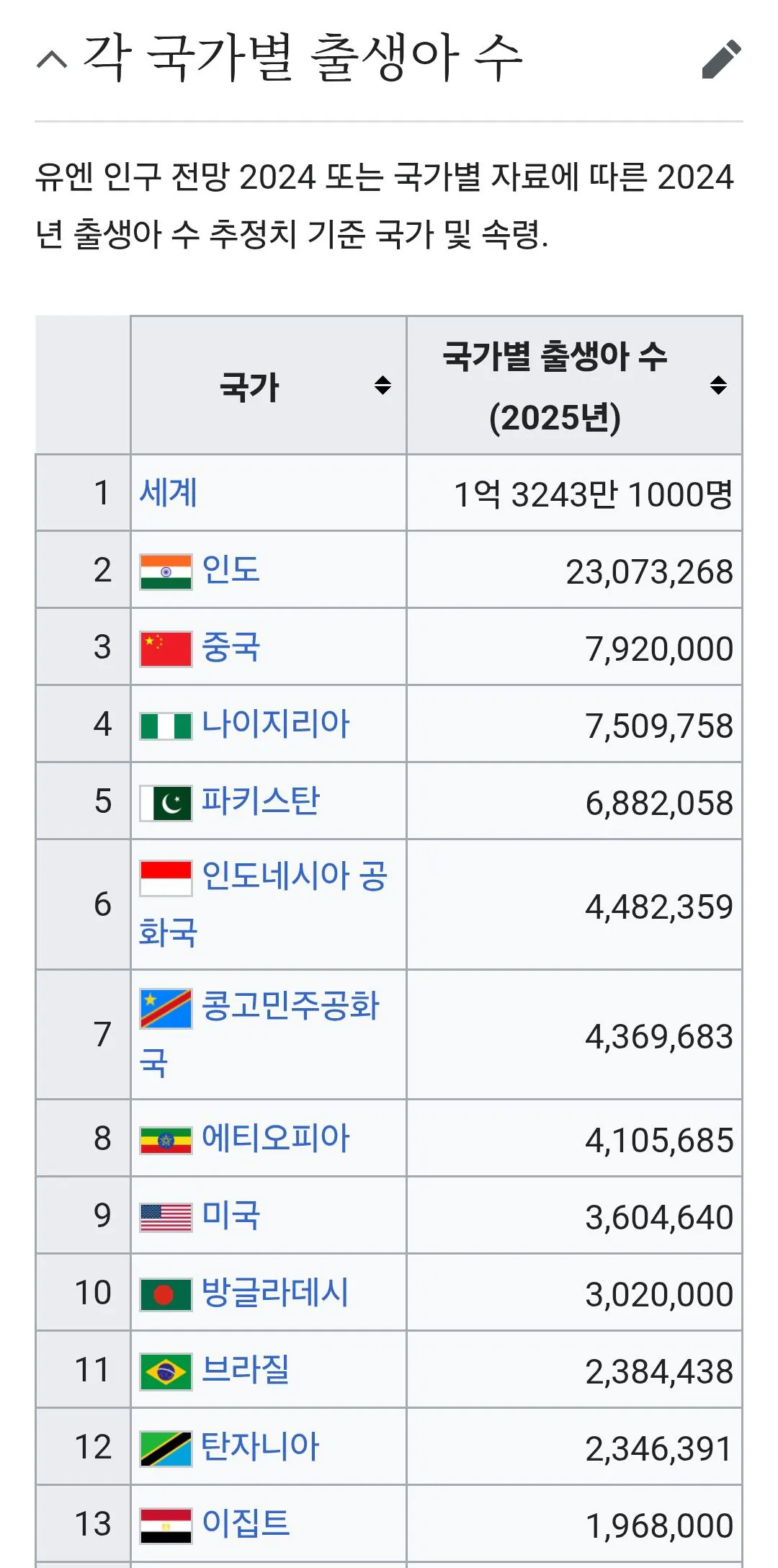 작년기준 전세계에 약 1억3243만 1000명이 태어났을것으로 추정