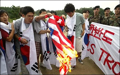 반미 감정이 심하다 해도 군 부대에 난입해 국기를 태운 건