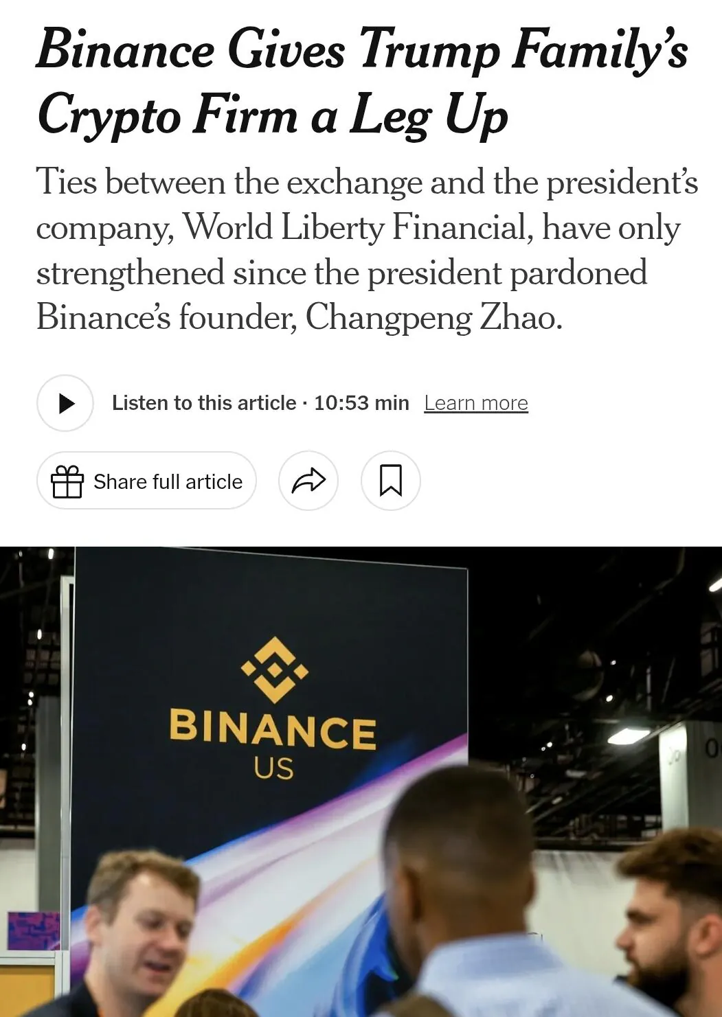 바이낸스 ' 트럼프에게 범죄 사면 받고 트럼프 자식 도움 '