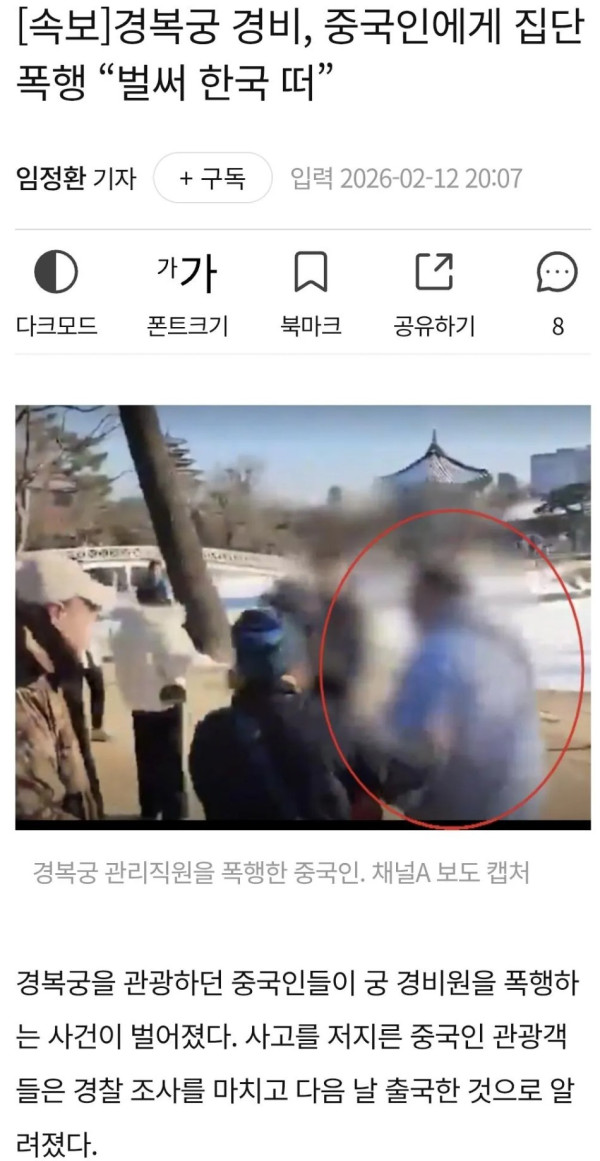 경복궁 경비, 중국인에게 집단폭행 “벌써 한국 떠”