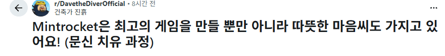 8개월전 데이브 더 다이버 레딧에 한 유저의 글이 올라옴