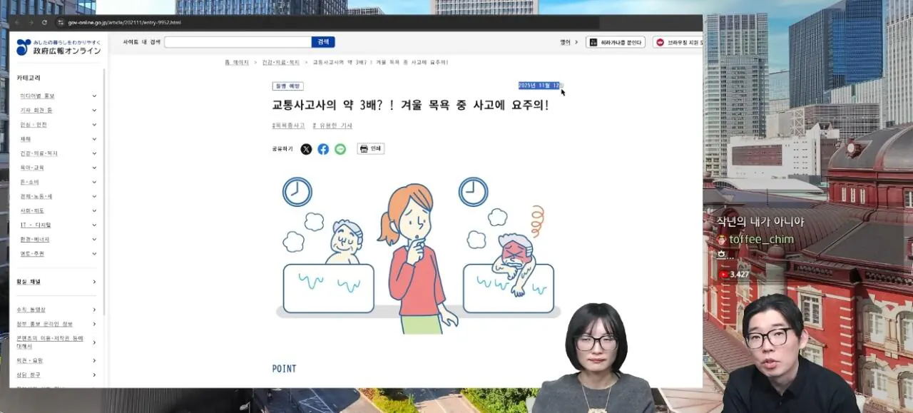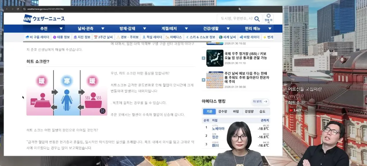 일본이 겨울이 추워지고 고령화 사회가 되면서