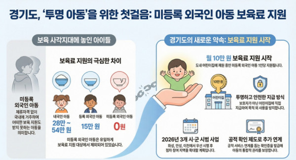 경기도, 2026년부터 불법체류자 아동 월 10만원 지원