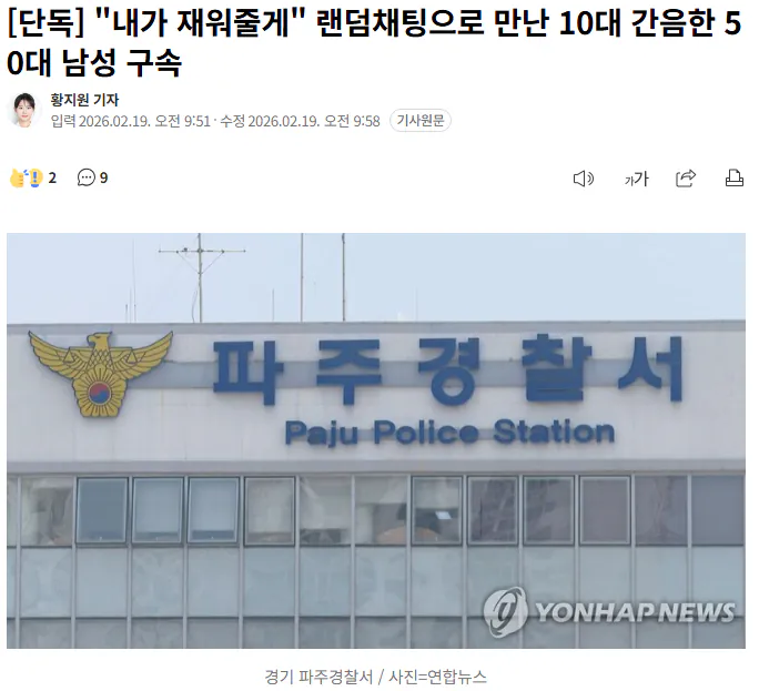 랜덤채팅으로 만난 10대 간음한 50대 남성