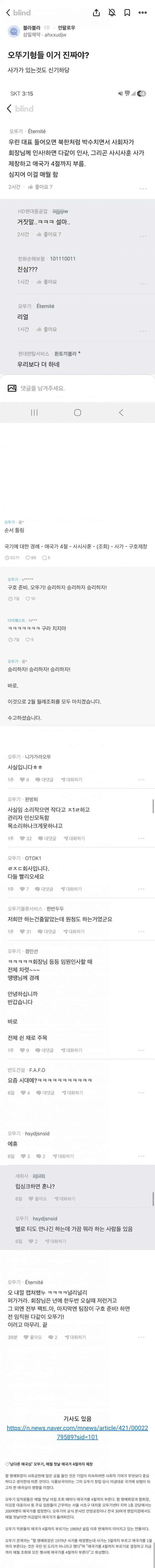 애국가 4절까지 부른다는 오뚜기 회사