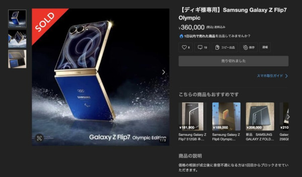 일본 중고나라 갤럭시 Z플립 올림픽 에디션 가격