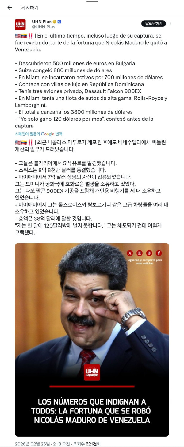 마두로 은닉 재산 일부 공개
