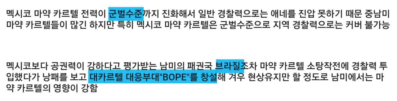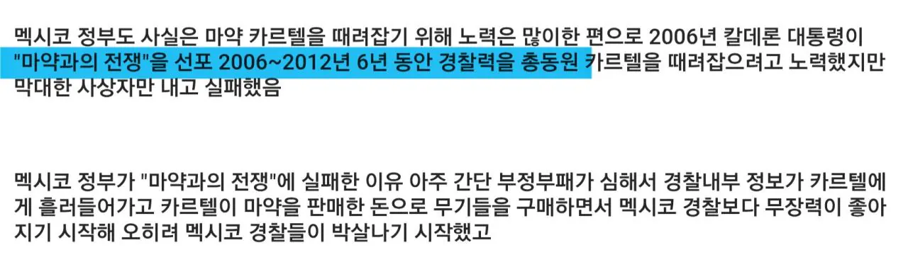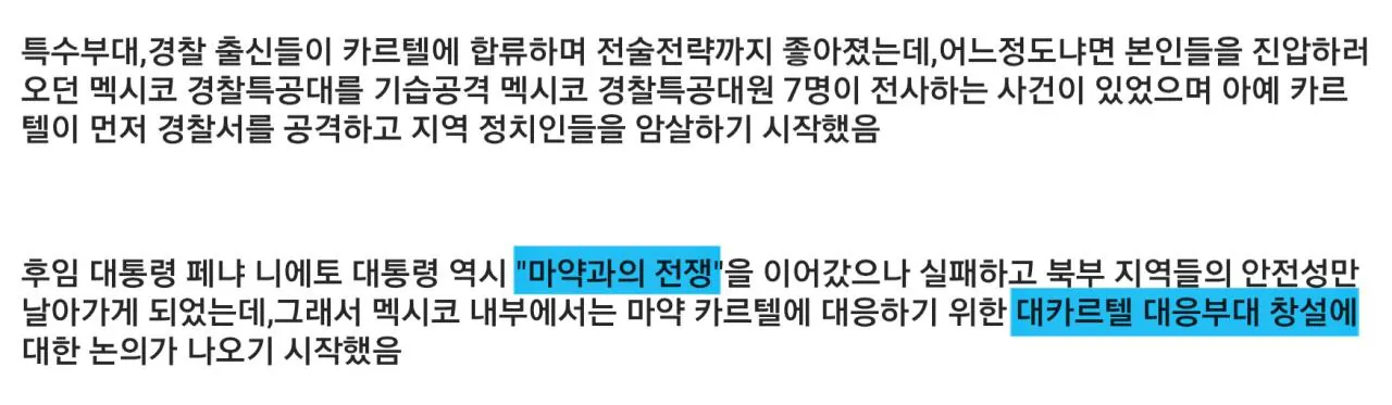 멕시코 정부는 마약 카르텔이 군벌화되고