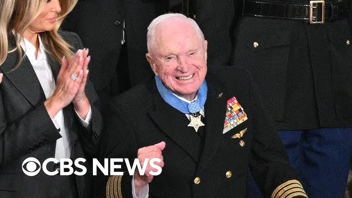 이틀 전 트럼프가 세계최고의 명예와 혜택을 자랑하는 '메달 오브 아너'를 한국전쟁에서도 활약한 100세의 베테랑영웅 로이스 윌리엄스 대령한테 수여