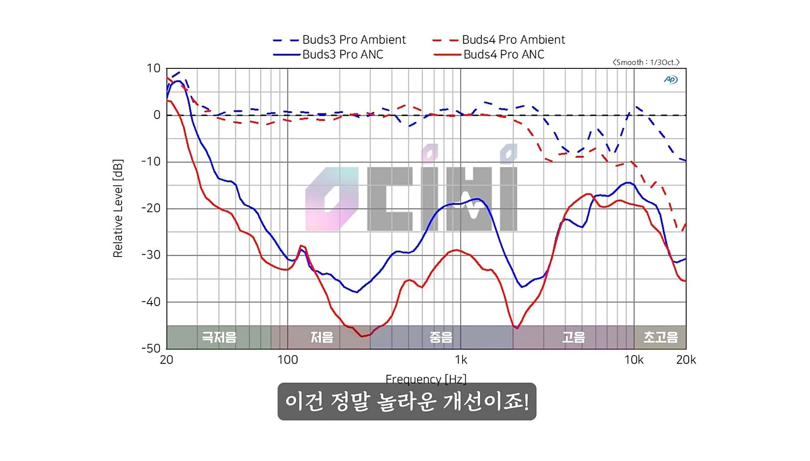 노이즈캔슬링 =에어팟 프로3 약승 피크치 기준으론 버즈프로4 승