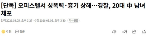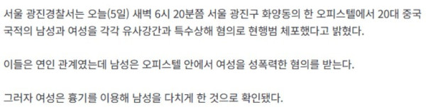 오피스텔서 성폭력·흉기 상해…경찰, 20대 中 남녀 체포
