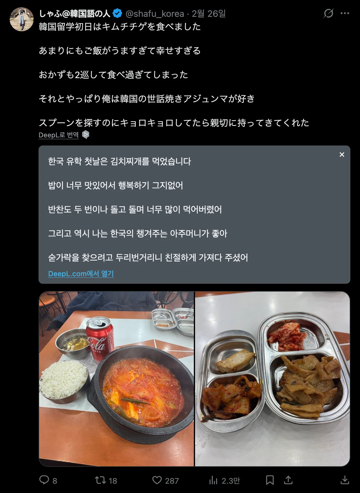 한국와서 9일 연속 김치찌개 먹는 일본인