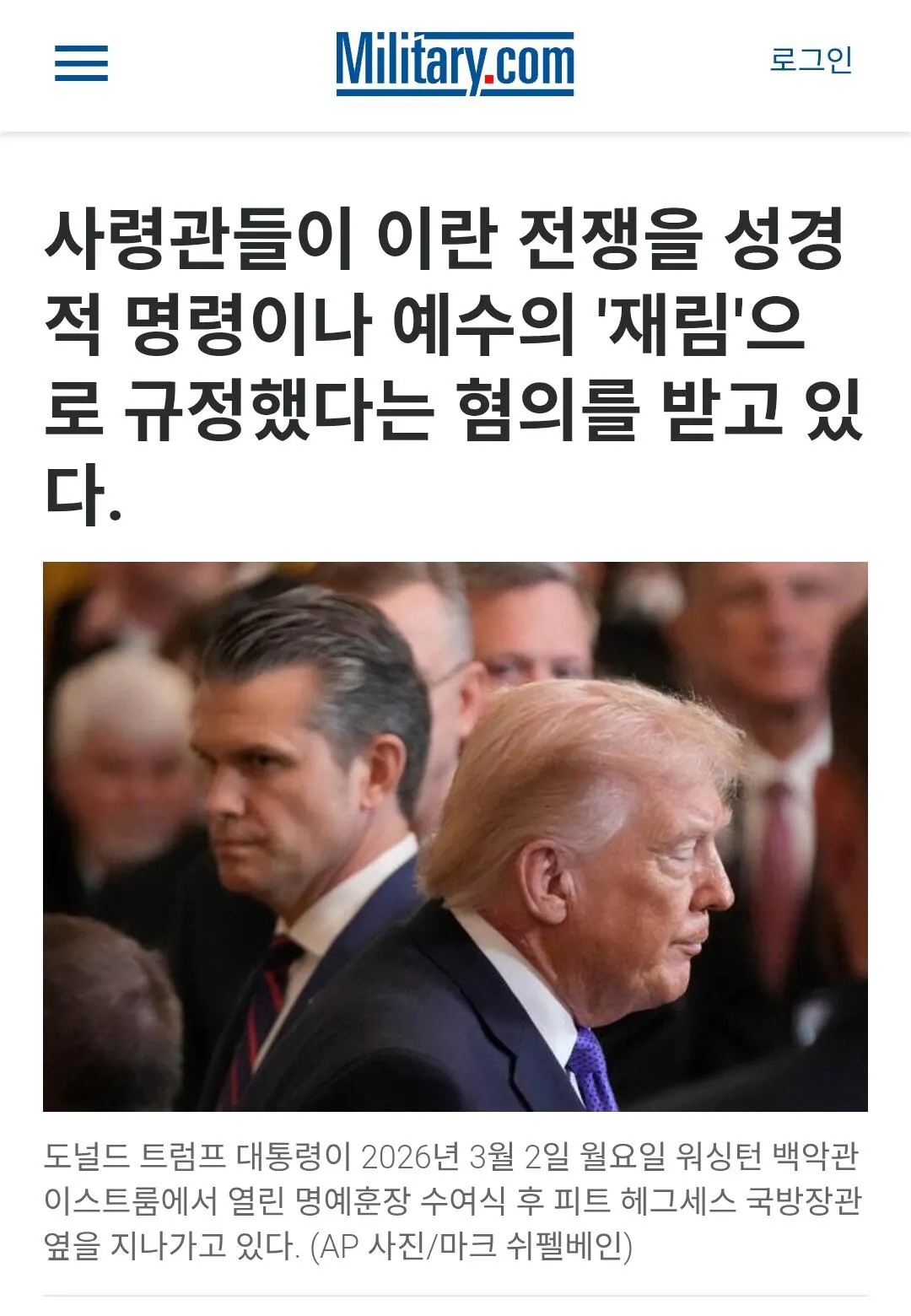 미군 고위 장교들이 트럼프 정부의 지시에 따라 병사들에게 이란전쟁을 성전이라고 교육하는 중이라고 함