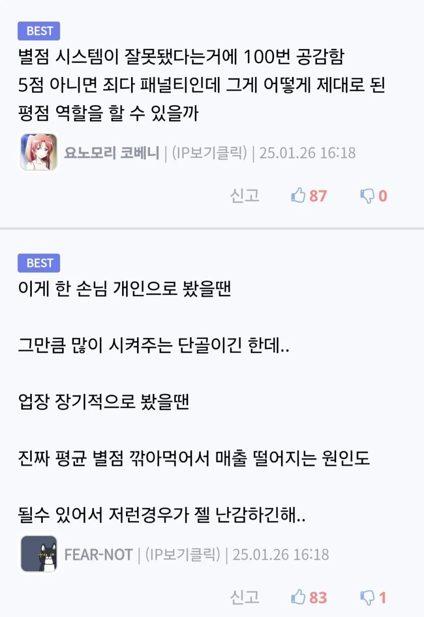 별점 4개 3번 준 고객 주문 거절한 식당 사장