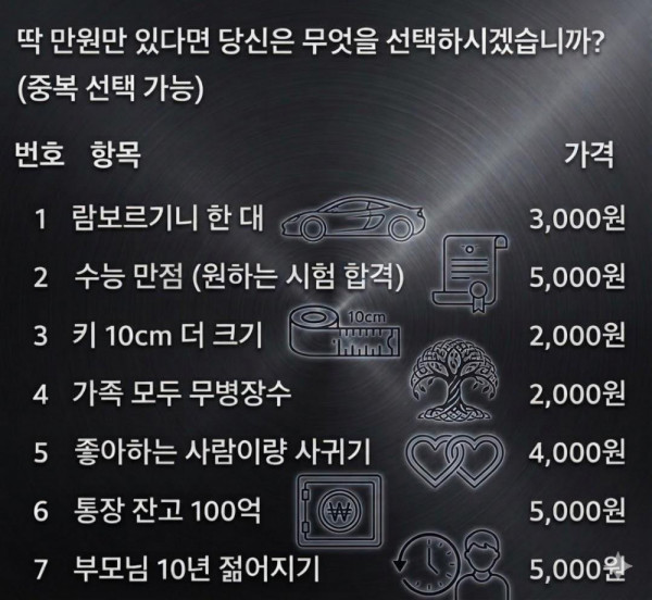 10,000원이 있다면 무엇을 선택하시겠습니까