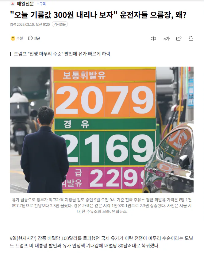 "오늘 기름값 300원 내리나 보자" 운전자들 으름장, 왜?